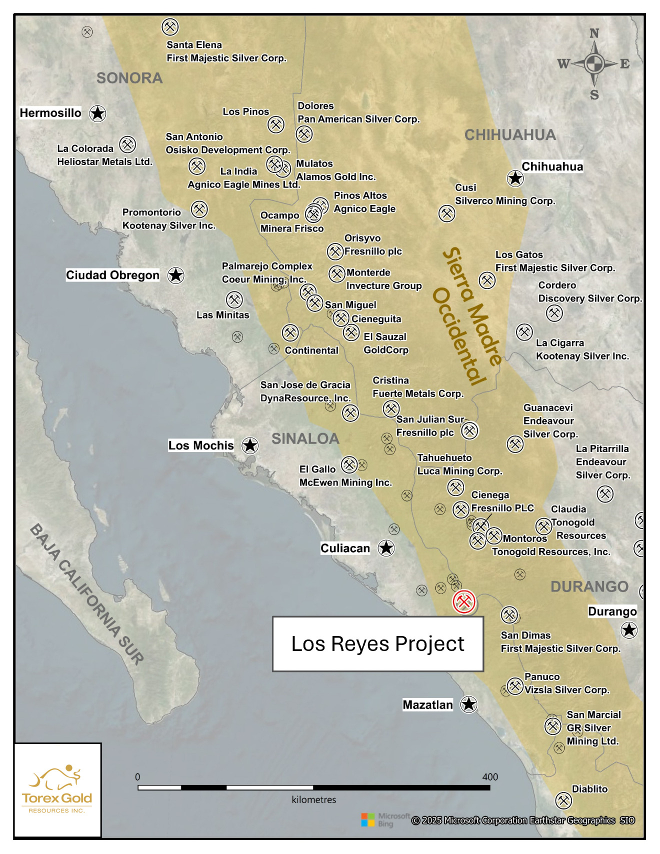 Our 100% owned Los Reyes Property is an advanced development-stage project measuring over 6,270 hectares within the prolific Sierra Madre mining belt in Sinaloa, Mexico. Located in the Guadalupe De Los Reyes mining district, the property contains several historic workings with mining dating back to the 1700s. The property is located approximately 45 km southeast of Cosalá , a mining-friendly city. Los Reyes was acquired through the acquisition of Prime Mining in October 2025.